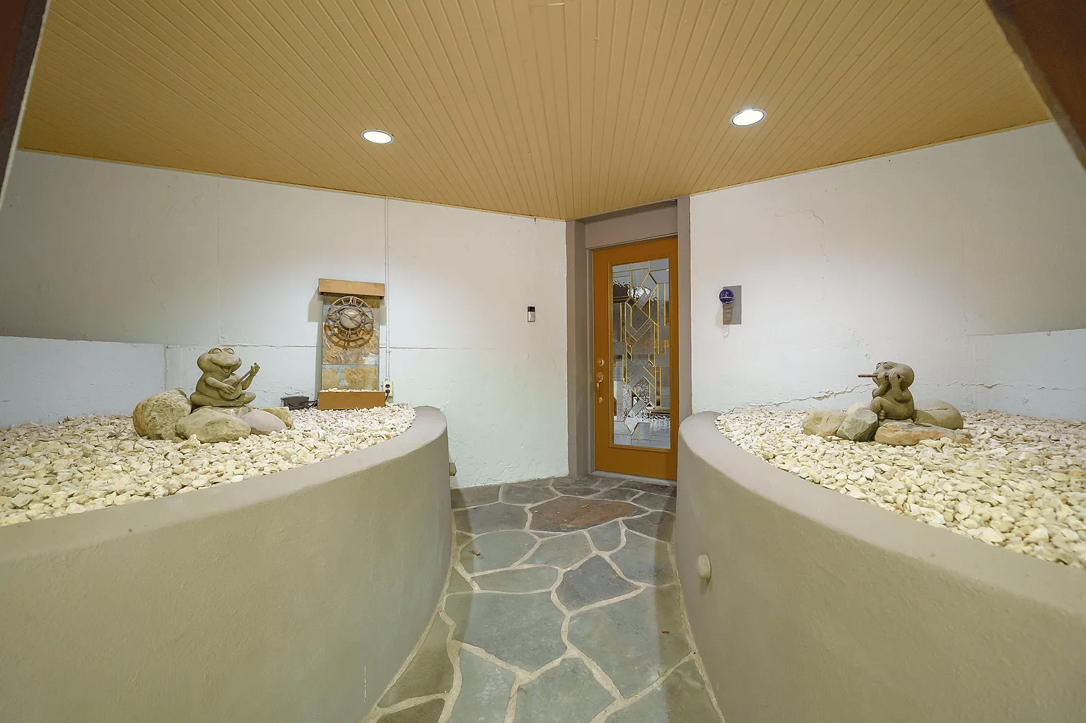 Step up the driveway for a better view at how bulbous the structures of this home are… it’s quite unique. And the vegetation around it doesn’t help the salad narrative for this place…