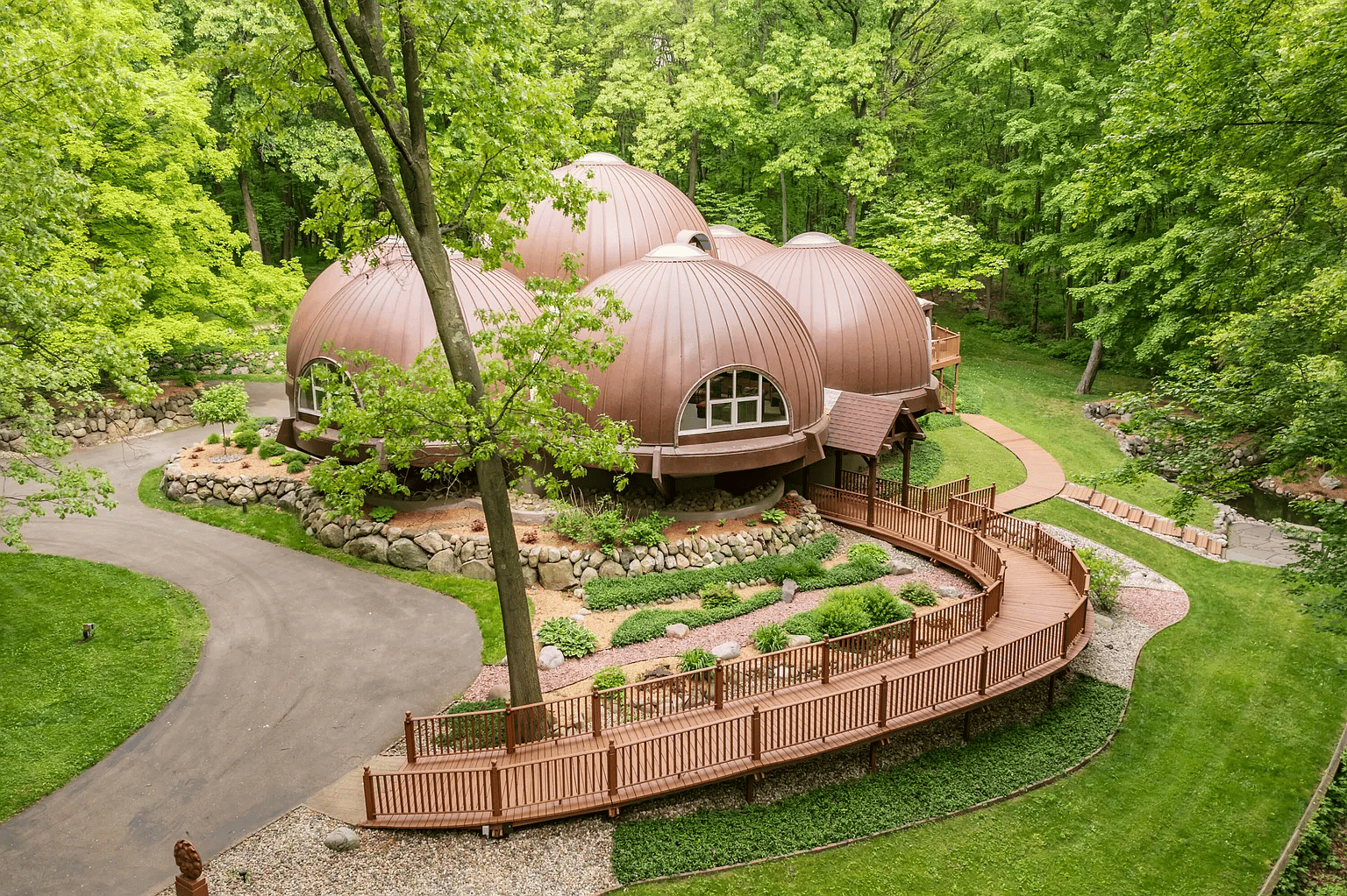 From overhead, we can take the craftsmanship it took to create this piece of architecture. Plus, with the giant trees around it, it’s a true showstopper!