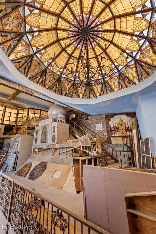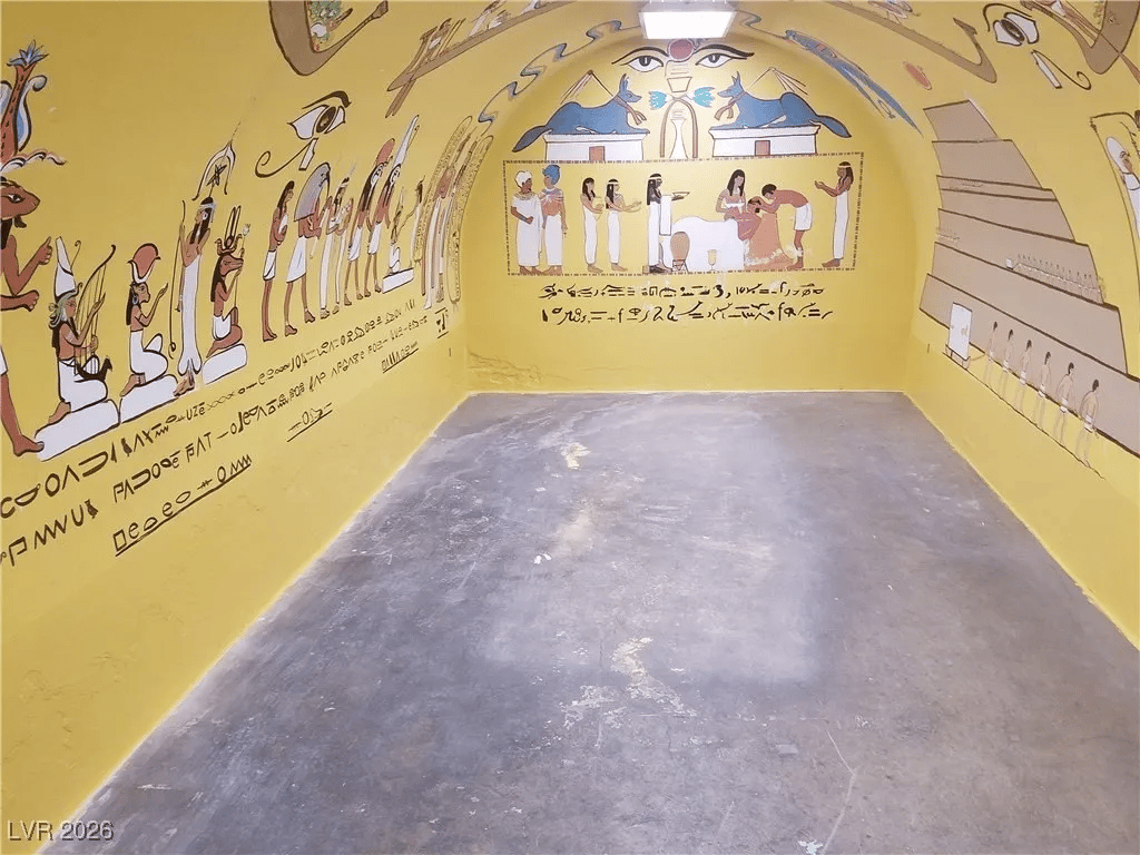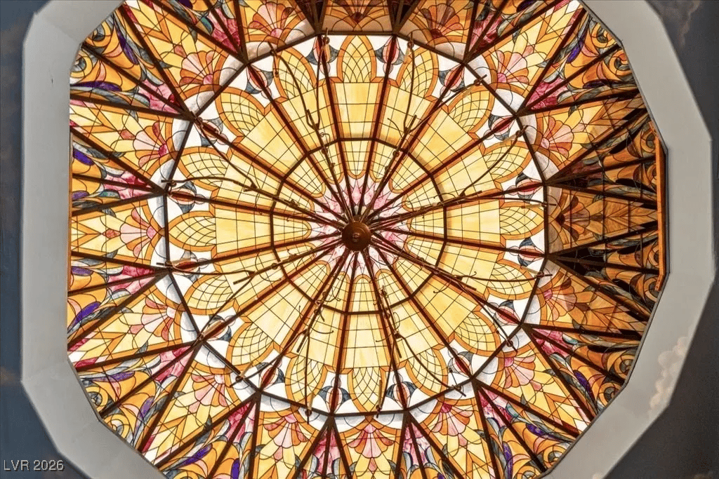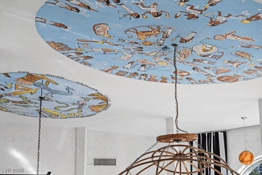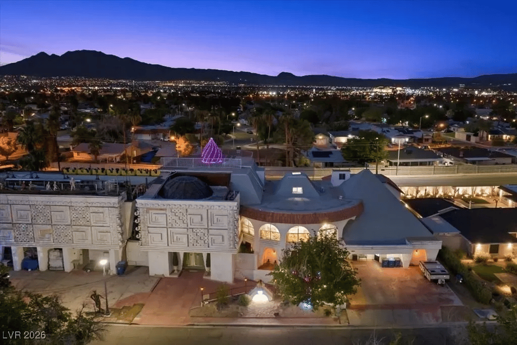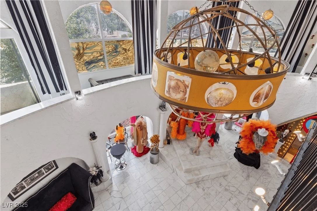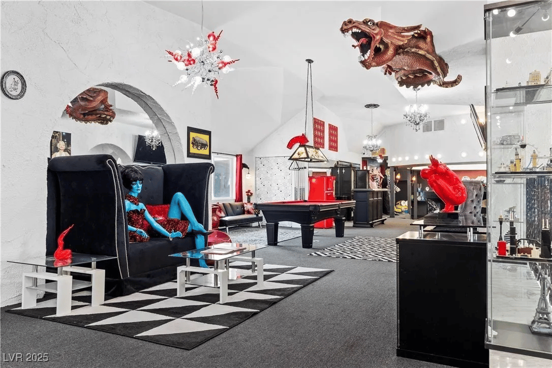 Built in 1969, the “Paradise Crest Manor” is a 4-bed, 4.5-bath, and nearly 9k sq. ft. property with a price tag of $2.3 million. Inside, it features a planetarium, a giant dragon sculpture, four Swarovski Crystal Chandeliers, and enough tacky showman decor to fill a standard swimming pool -which this home has as well.