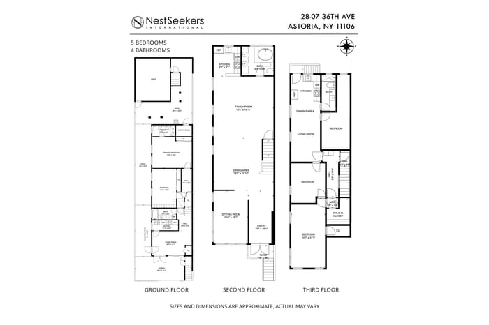 Located in Queen, NY, this 5-bed, 4-bath, multi-family property functions as a duplex with three floors that have been jam-packed with rooms.