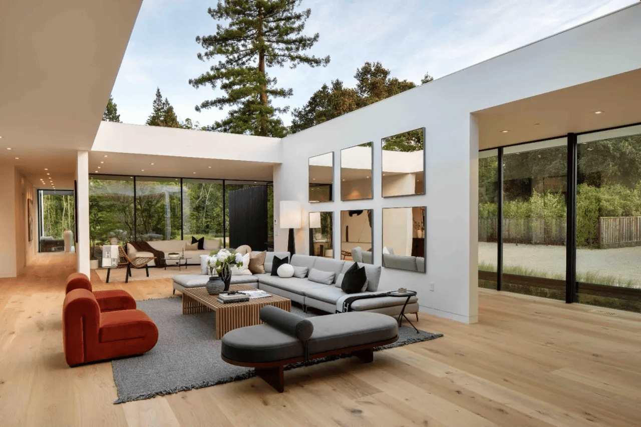 Built in 2019, this Bay Area property is a 5-bed, 5.5-bath, 5-car garage-having $21 million dollar slice of quiet luxury. Not only are the rows of foliage and stones nice to look at, but they’re a natural landing strip for Ole Saint Nick.