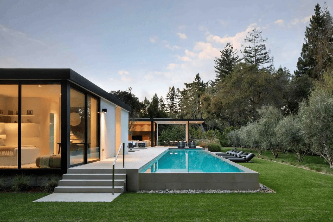 Typically, I’d call this semi-above ground pool a bit tacky -like PICK if you want in or out of the ground!! But, for this property, the slightly-ajar pool feels like an artistic choice to pair with the rest of the home. It spans nearly the width of the house, and is like a private getaway amongst nature.